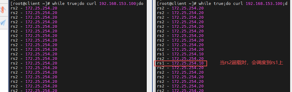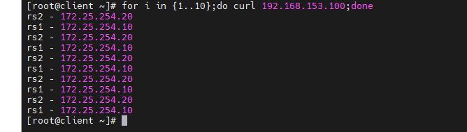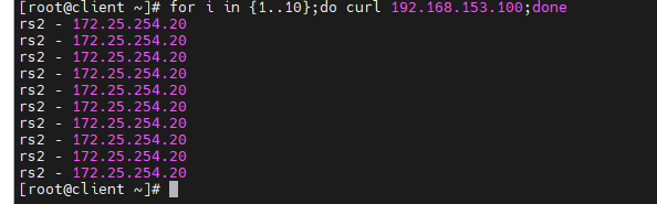 [root@rs2 ~]# echo rs2 - 172.25.254.20 > /var/www/html/index.html
