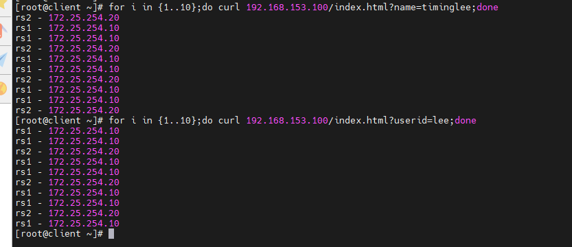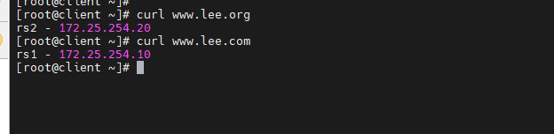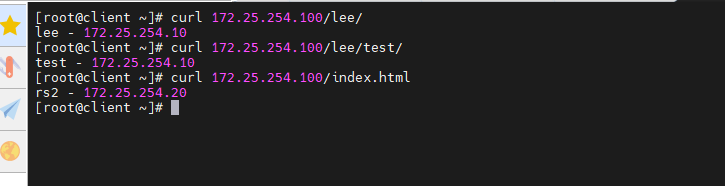 [root@rs2 ~]# echo lee - 172.25.254.20 > /var/www/html/lee/index.html