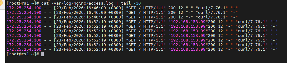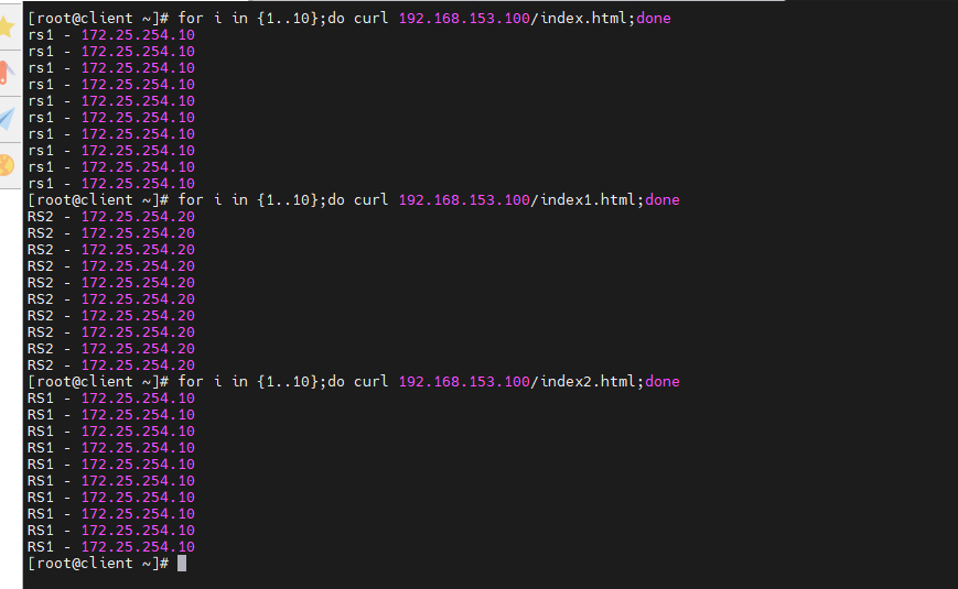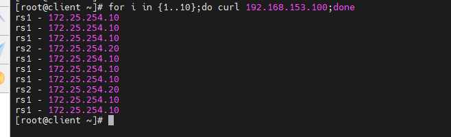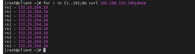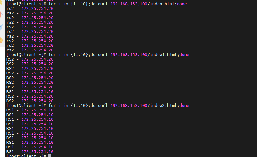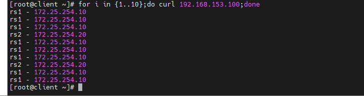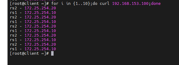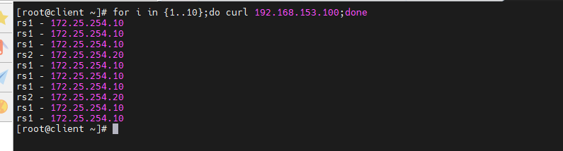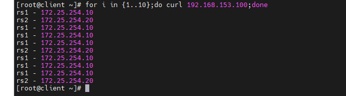 [root@rs1 ~]# echo rs1 - 172.25.254.10 > /var/www/html/index.html