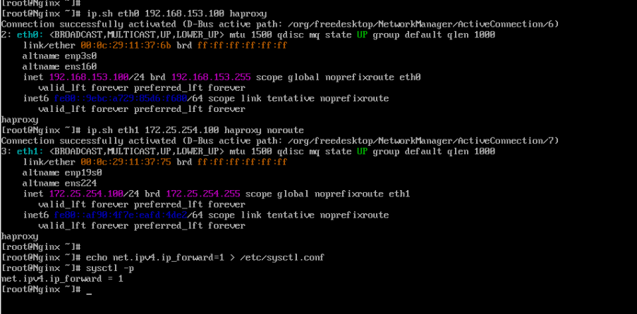 [root@haproxy ~]# ip.sh eth1 172.25.254.100 haproxy noroute