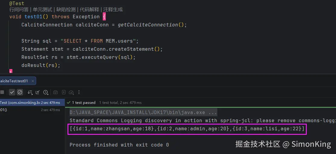 我们分别从Java内存对象、CSV文件、Mysql数据库来了解,最后看看混合查询的效果。