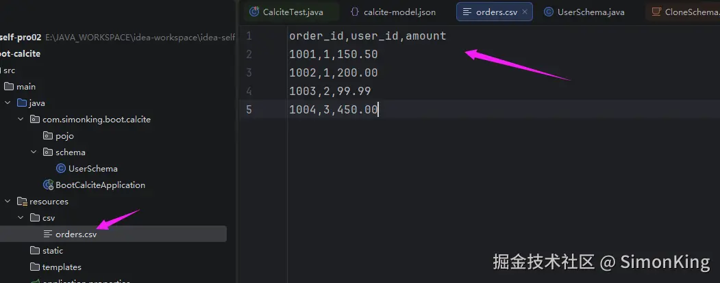 CSV的查询需要引入扩展包calcite-csv,关键的Schema类: