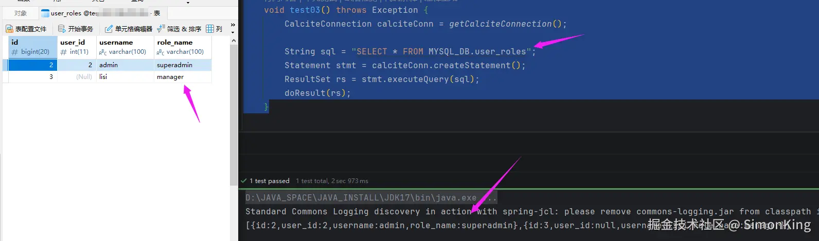 String sql = "SELECT * FROM MYSQL_DB.user_roles";