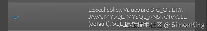 prop.put("lex", "MYSQL");