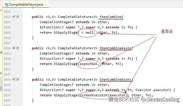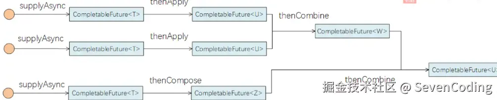 - themCombineAsync三个入参的方法,支持自定义线程池并指定使用自定义线程池中的线程作为工作线程去处理待执行任务。