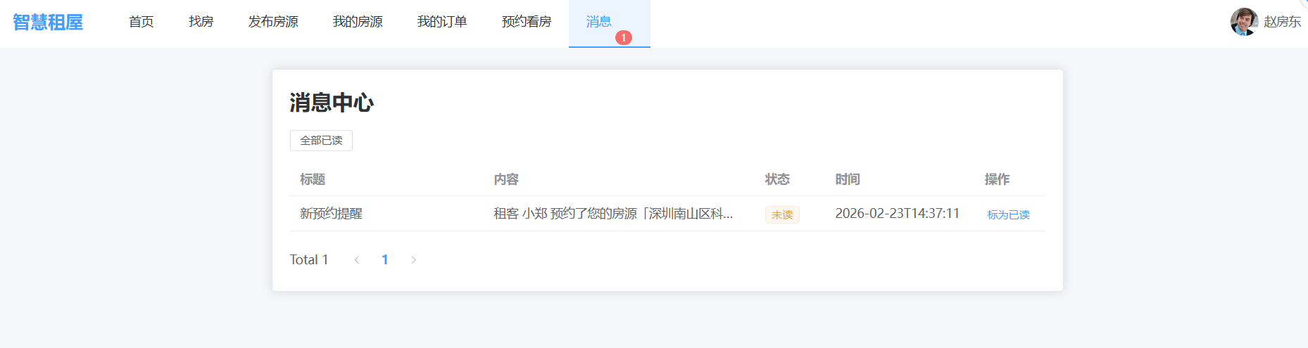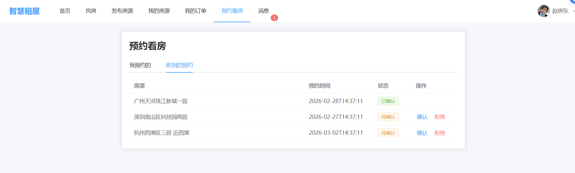 - 预约看房:租客预约、房东确认/拒绝