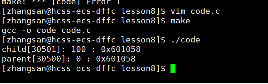 地址相同:这个地址是虚拟地址,每个进程都有自己独立的虚拟地址空间,所以父子进程里同一个变量的虚拟地址可以完全一样。