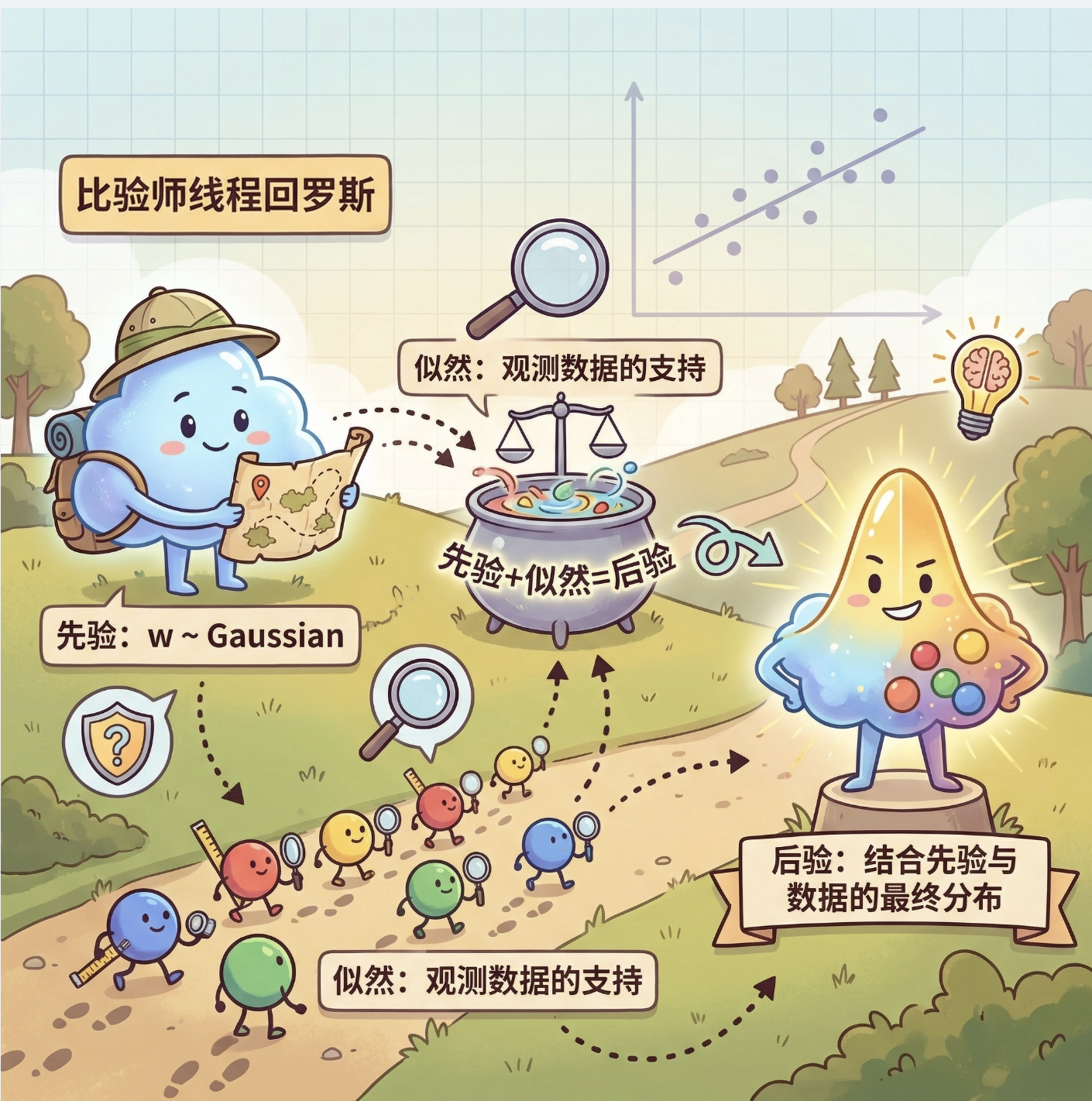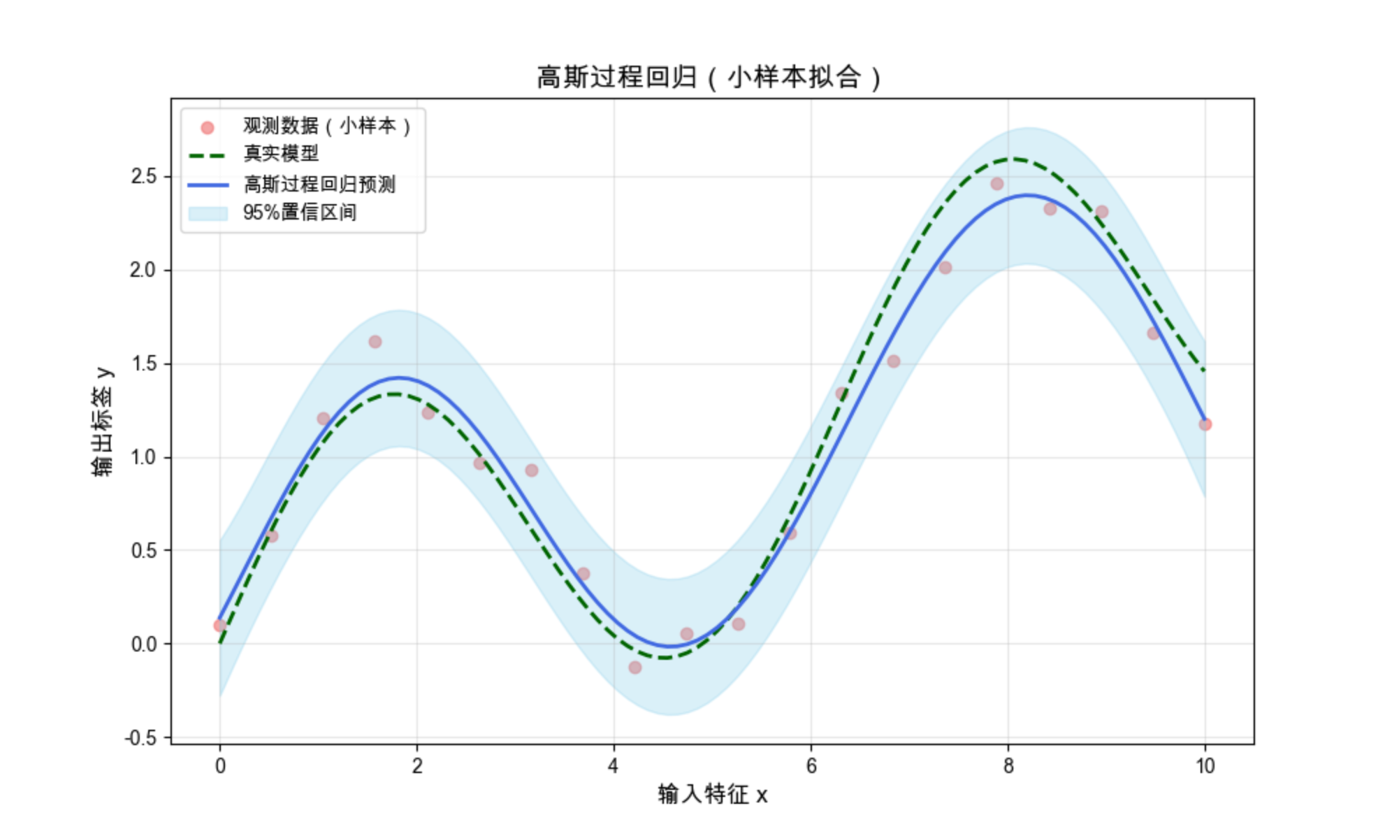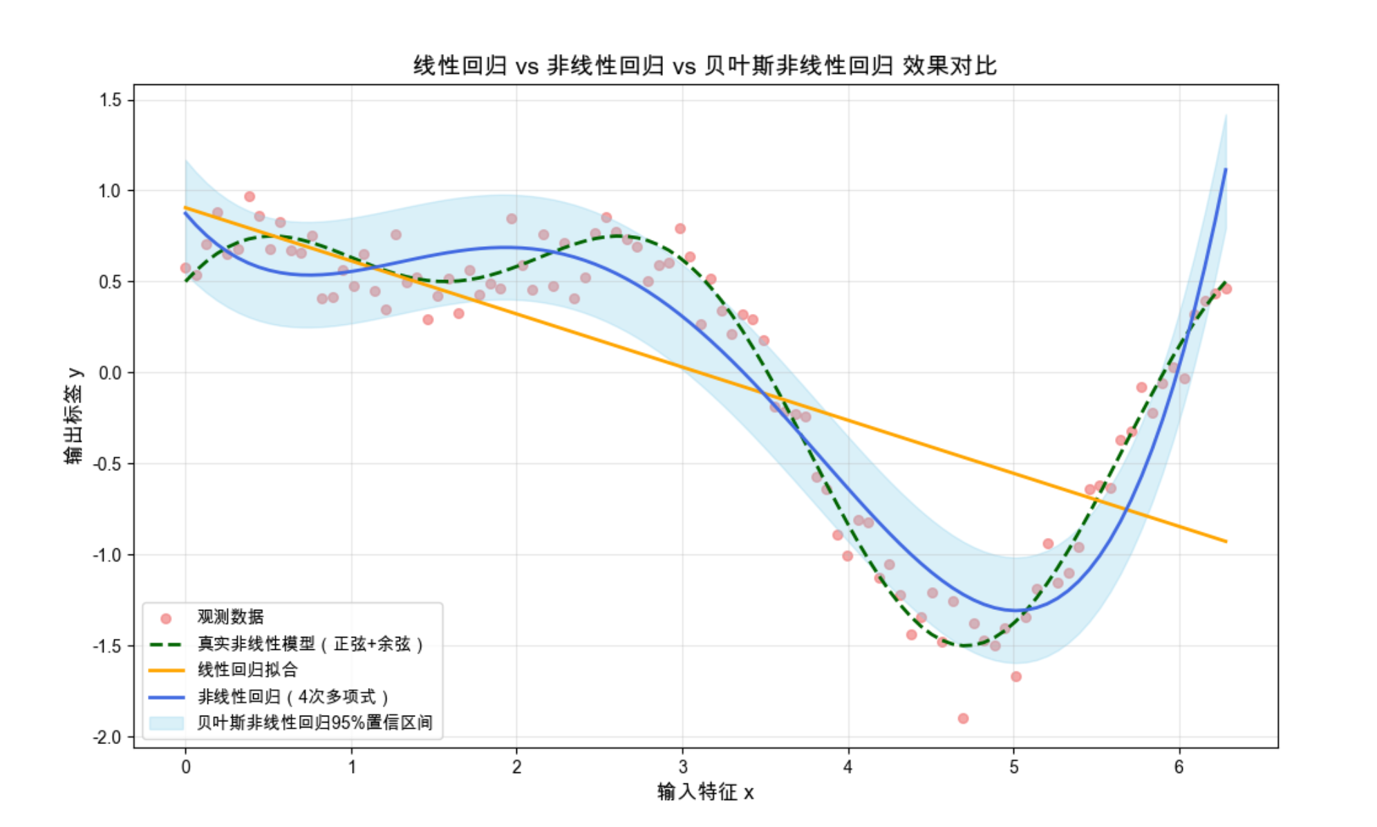 2.关键差异:普通回归只给单一预测值,贝叶斯回归 / GPR 能给出不确定性(置信区间),稀疏回归能筛选重要特征;