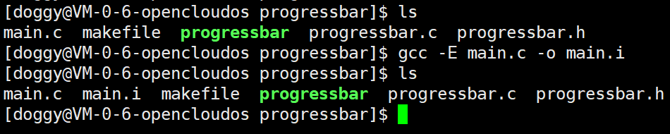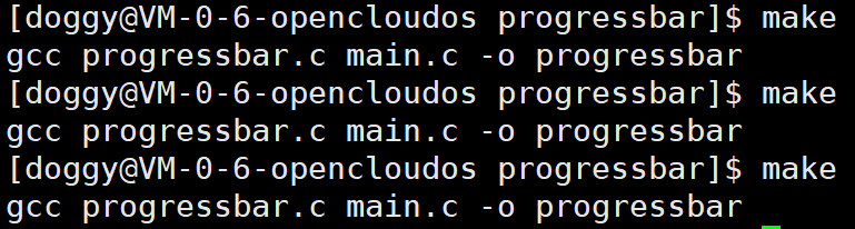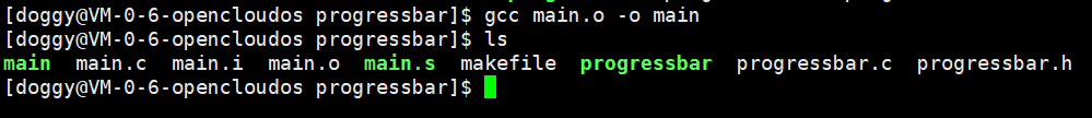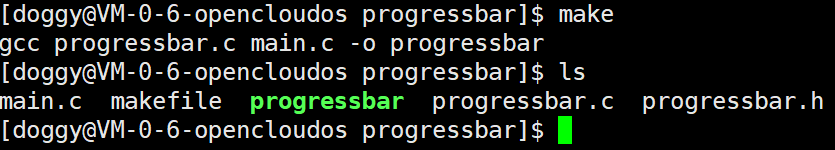 有了上面的类似脚本一样的东西,我们只需在progressbar.c和main.c所在路径下,使用make指令,就会直接生成progressbar !