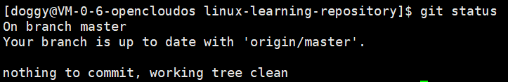 **"git status"**检查仓库内是否有文件发生变动,这里提示文件已经都是最新,无需提交
