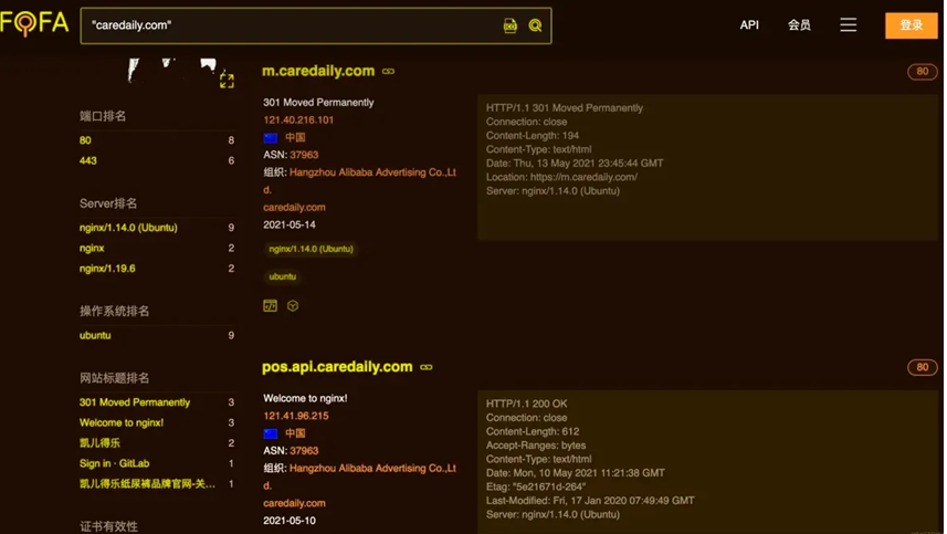 在fofa中输入域名,搜索子域名。-扩大攻击面