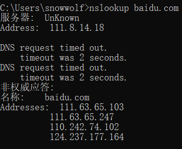 nslookup baidu.com #查询更多详细信息