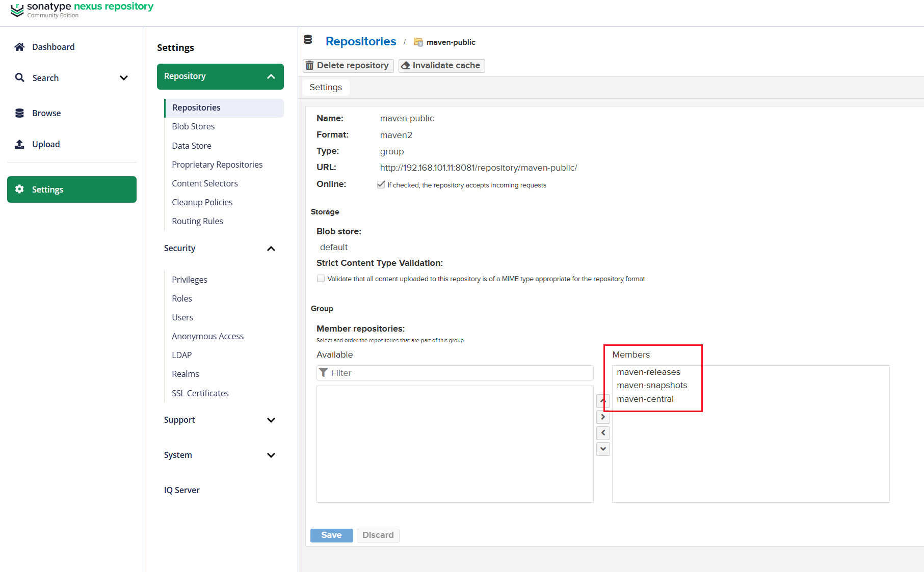(maven-public 组合了 maven-central、maven-releases、maven-snapshots)
