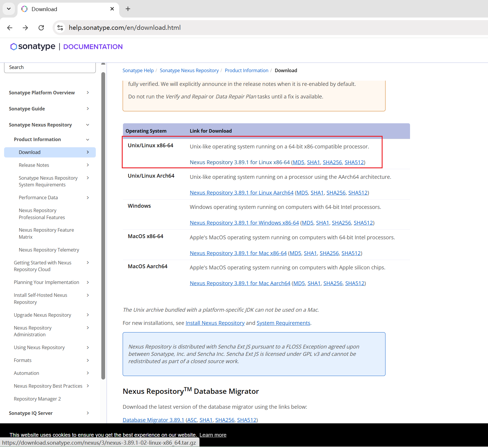 访问官网(https://help.sonatype.com/en/download.html),下载对应系统的安装包。