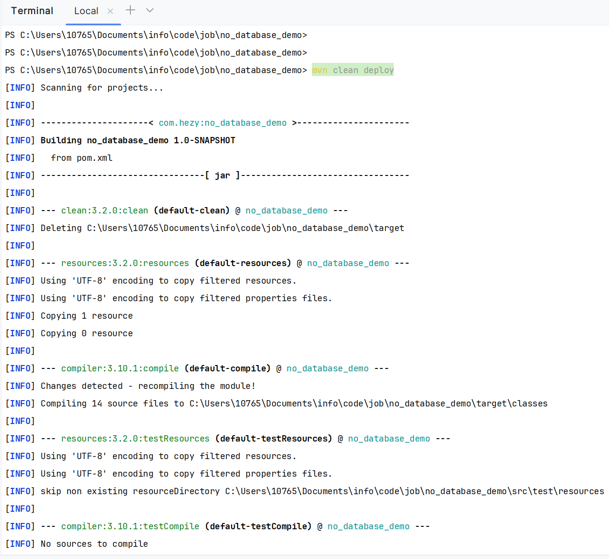 执行 mvn clean deploy 命令,将该项目部署到私服仓库中。