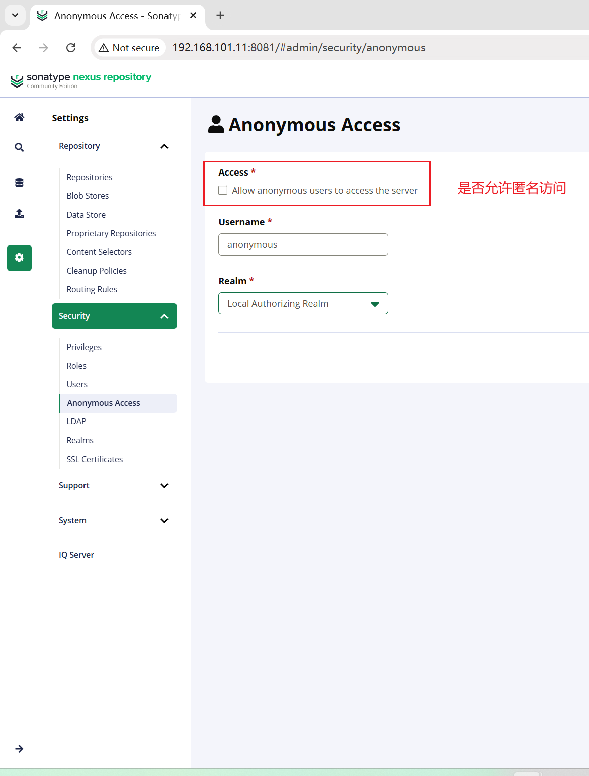 在首次登录时也会有弹窗,让你选择,建议不勾选,不允许匿名访问。