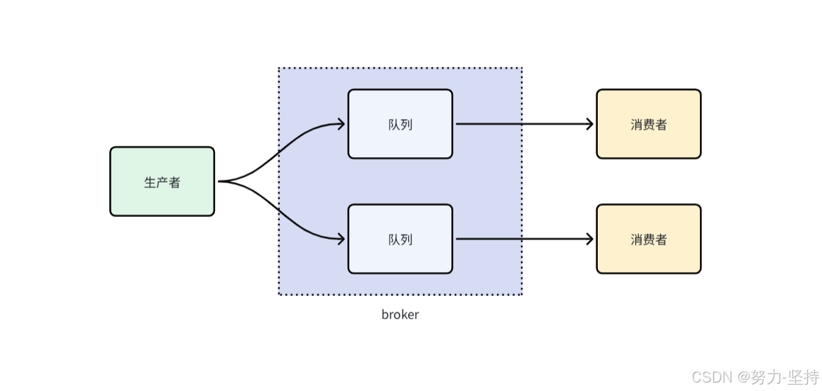- broker:负责接收、存储和分发消息的中间件组件,实现了发送者和接收者之间的解耦和异步通信。