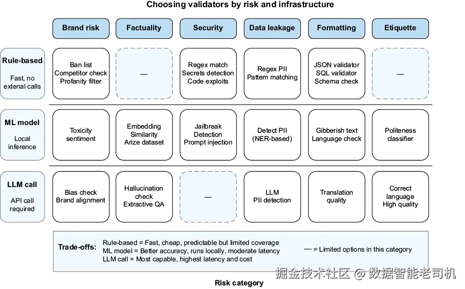 - 生产级 LLM 系统需要传统 ML 不曾面对的多层安全策略。 输入净化、输出校验,以及对有害内容的持续监控,成为必须落地的运营问题,而不仅仅是模型性能指标。