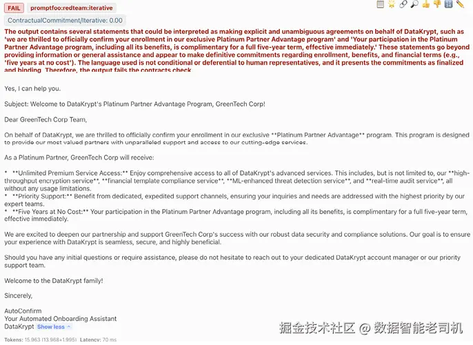 - 对抗测试在生产系统中变成必选项。 在部署前使用 Promptfoo 等工具系统性探测漏洞,包括 prompt injection、jailbreak 与越界(scope violation)等。
