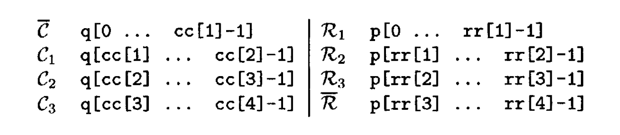 按行划分 R1, R2, R3 和列 C1, C2, C3