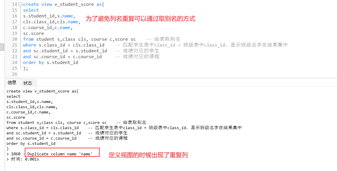 创建视图时,指定列名