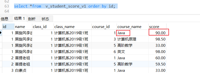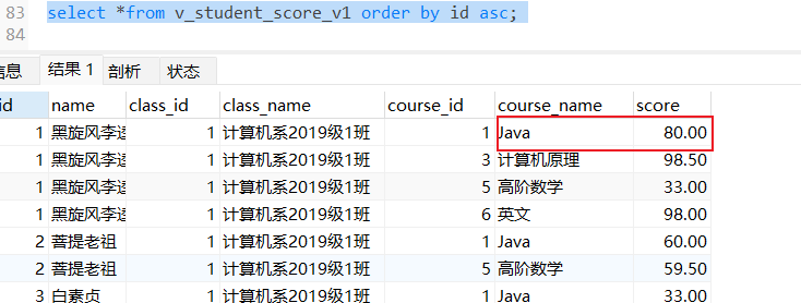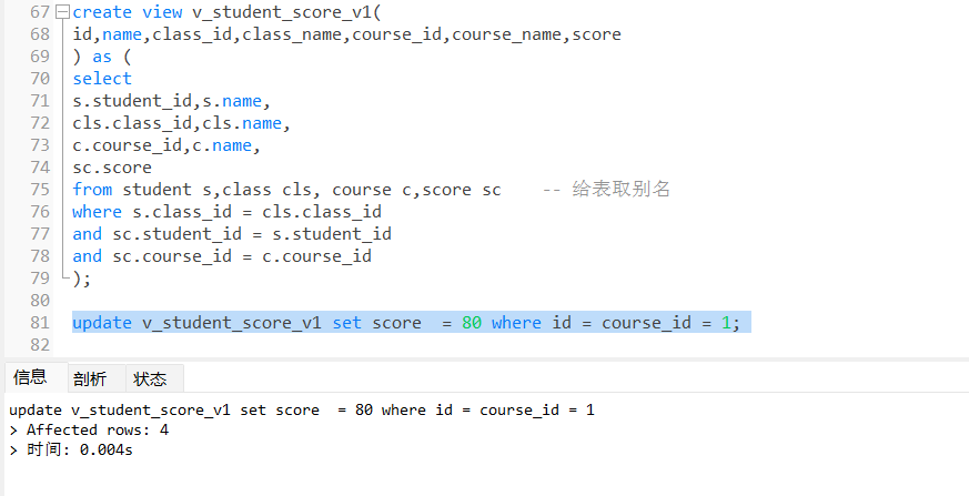 可以由下图观察得到,更新视图数据会影响基本表数据
