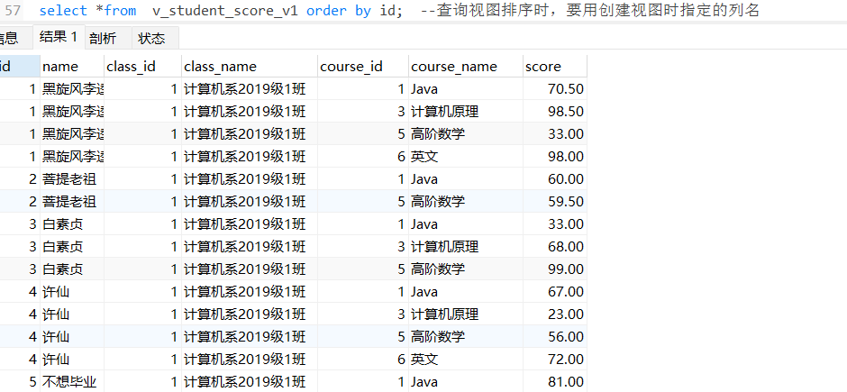 -- view创建视图的关键字