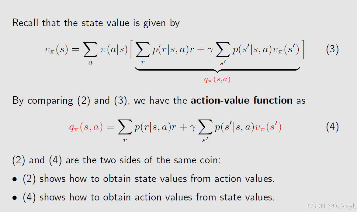 - 贝尔曼方程的右半部分等价于动作价值函数 Q π ( s , a ) Q_{\pi}(s,a) Qπ(s,a)
