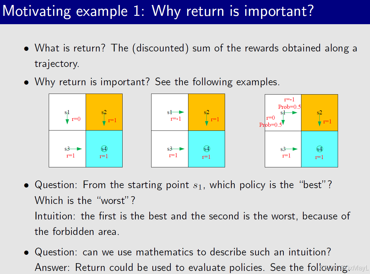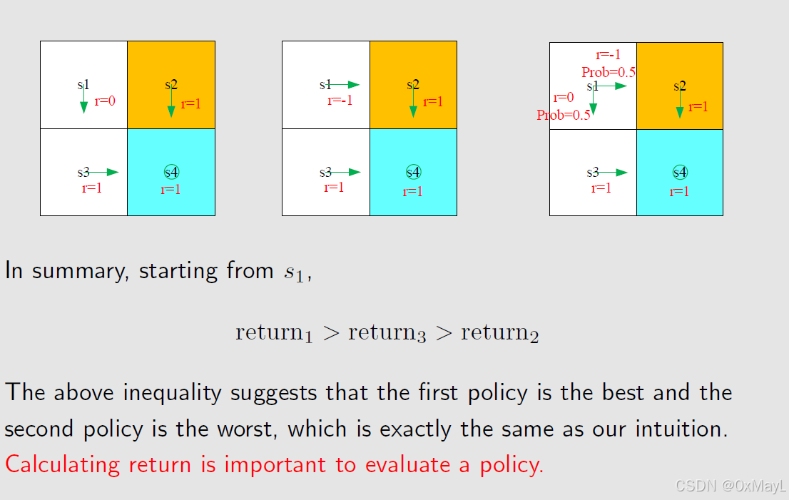 - Return的作用:可用于评估当前策略的价值。
