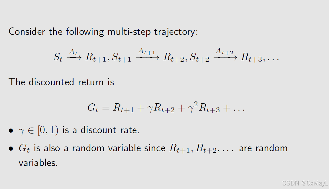 - Return是沿着某一路径的累积折扣奖励