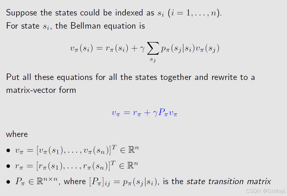 - P π P_{\pi} Pπ代表当前状态转移矩阵,维度为nxn。