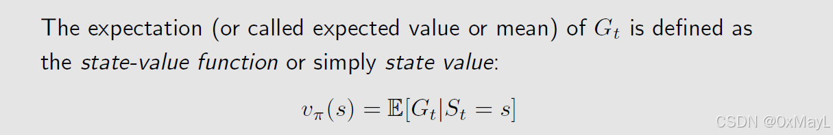 State-value function状态价值函数