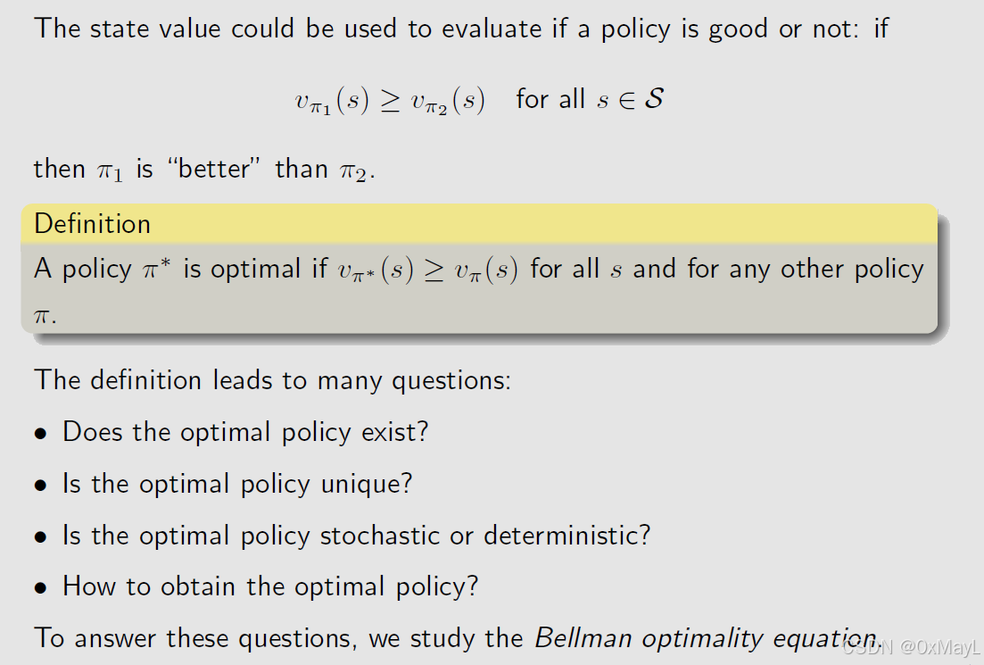 最优贝尔曼公式的定义
