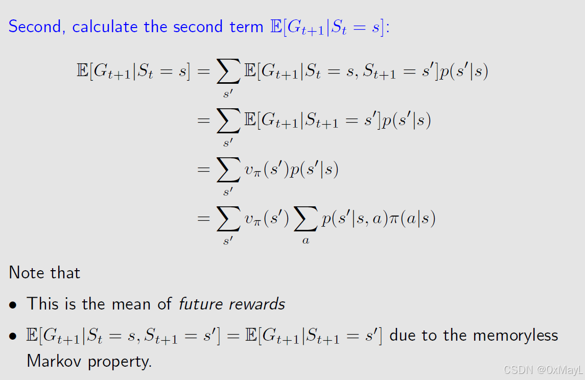 - 当前状态的期望奖励和未来状态的期望奖励的总和。