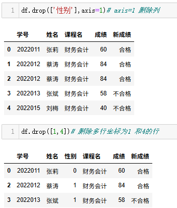 df.drop(['性别'],axis=1)# axis=1 删除列