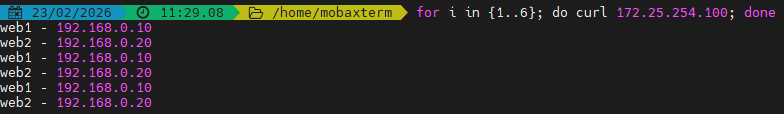 for i in {1..6}; do curl 172.25.254.100; done