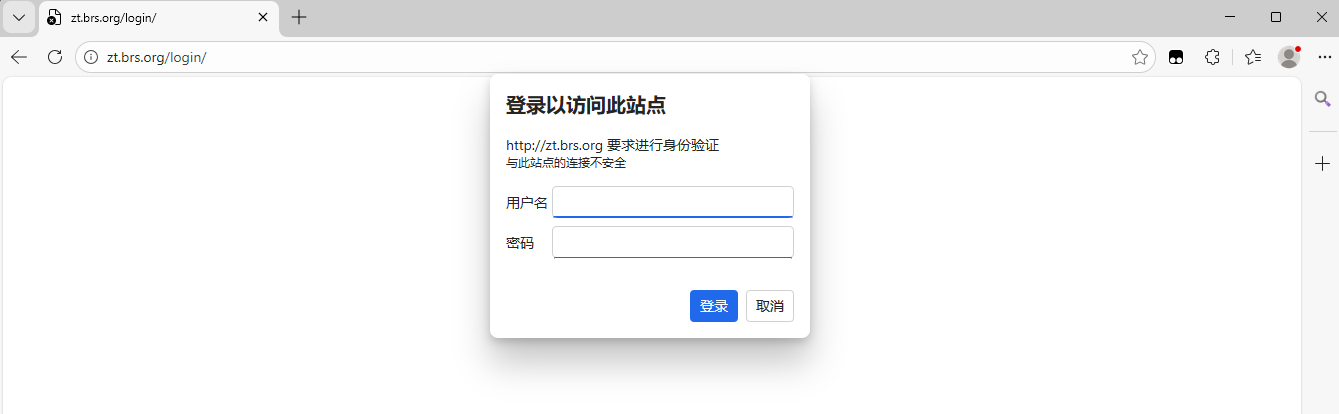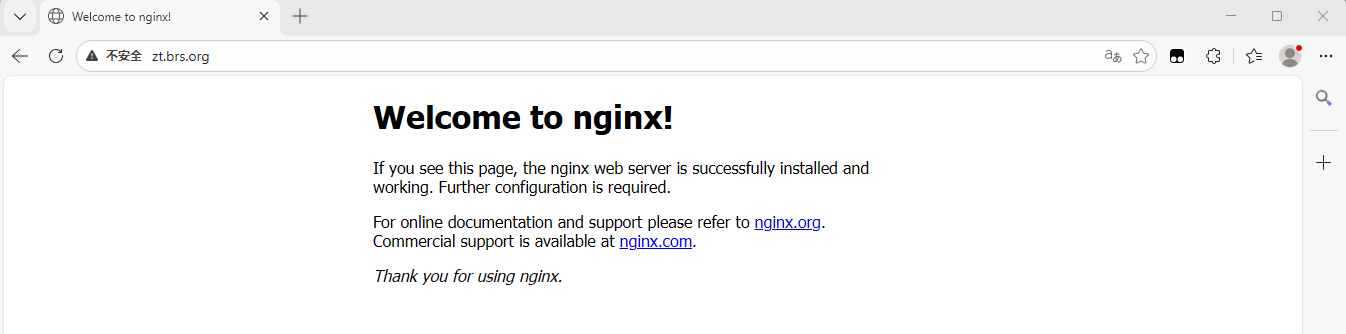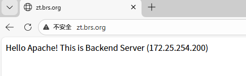 访问http://zt.brs.org,显示后端Apache的测试内容