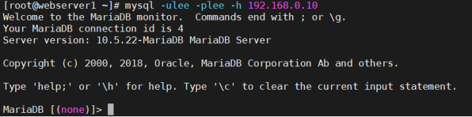 # mysql -ulee -plee -h 192.168.0. 1 0