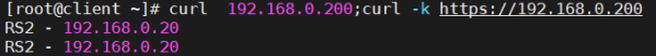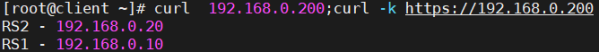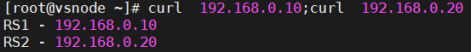 # echo RS1 - 192.168.0.10 > /usr/share/nginx/html/index.html