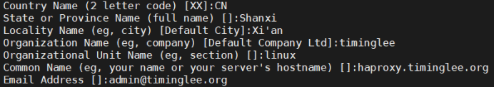 # openssl req -newkey rsa:2048 -nodes -sha256 -keyout /etc/haproxy/certs/timinglee.org.key -x509 -days 365 -out /etc/haproxy/certs/timinglee.org.crt