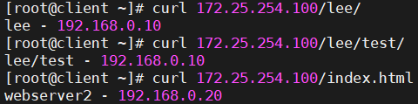 webserver2 ~]# echo lee - 192.168.0.20 > /var/www/html/lee/index.html