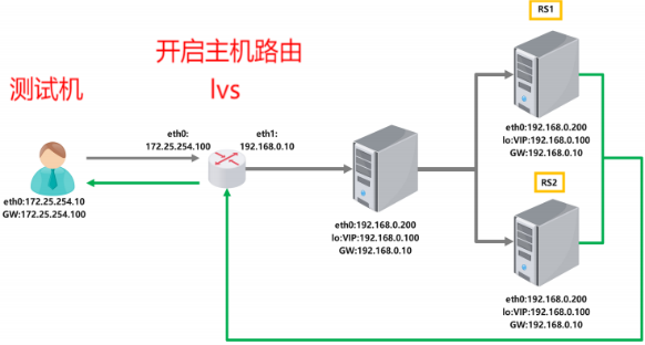 RIP和DIP应在同一个IP网络,且应使用私网地址;RS的网关要指向DIP