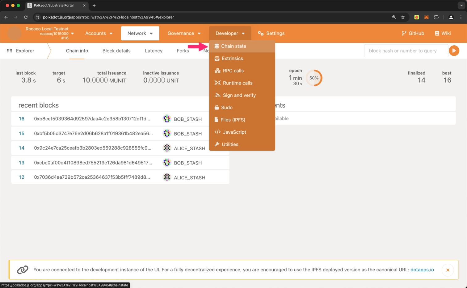 Developer → Chain state