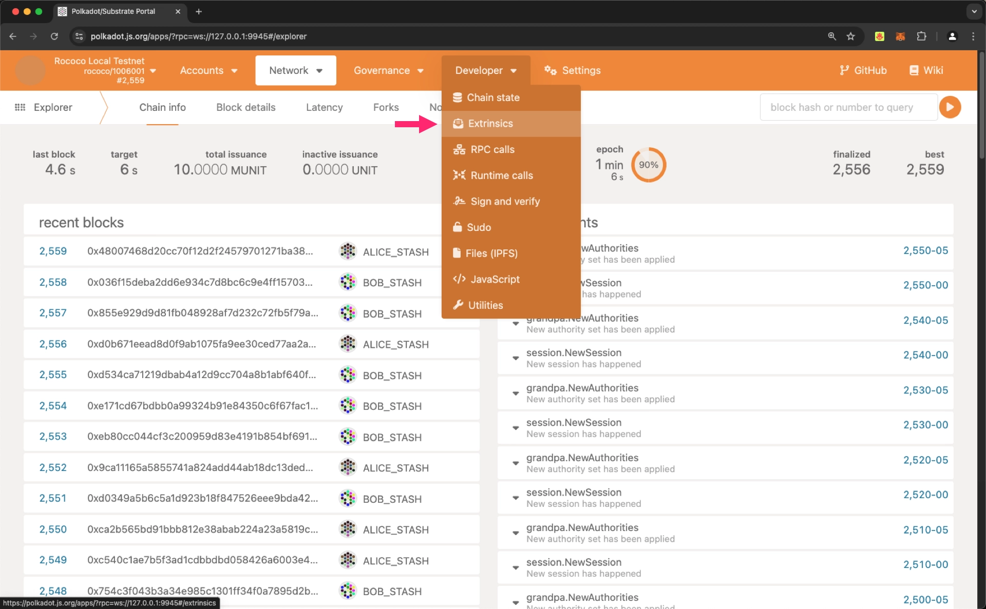 Relay Chain → Developer → Extrinsics