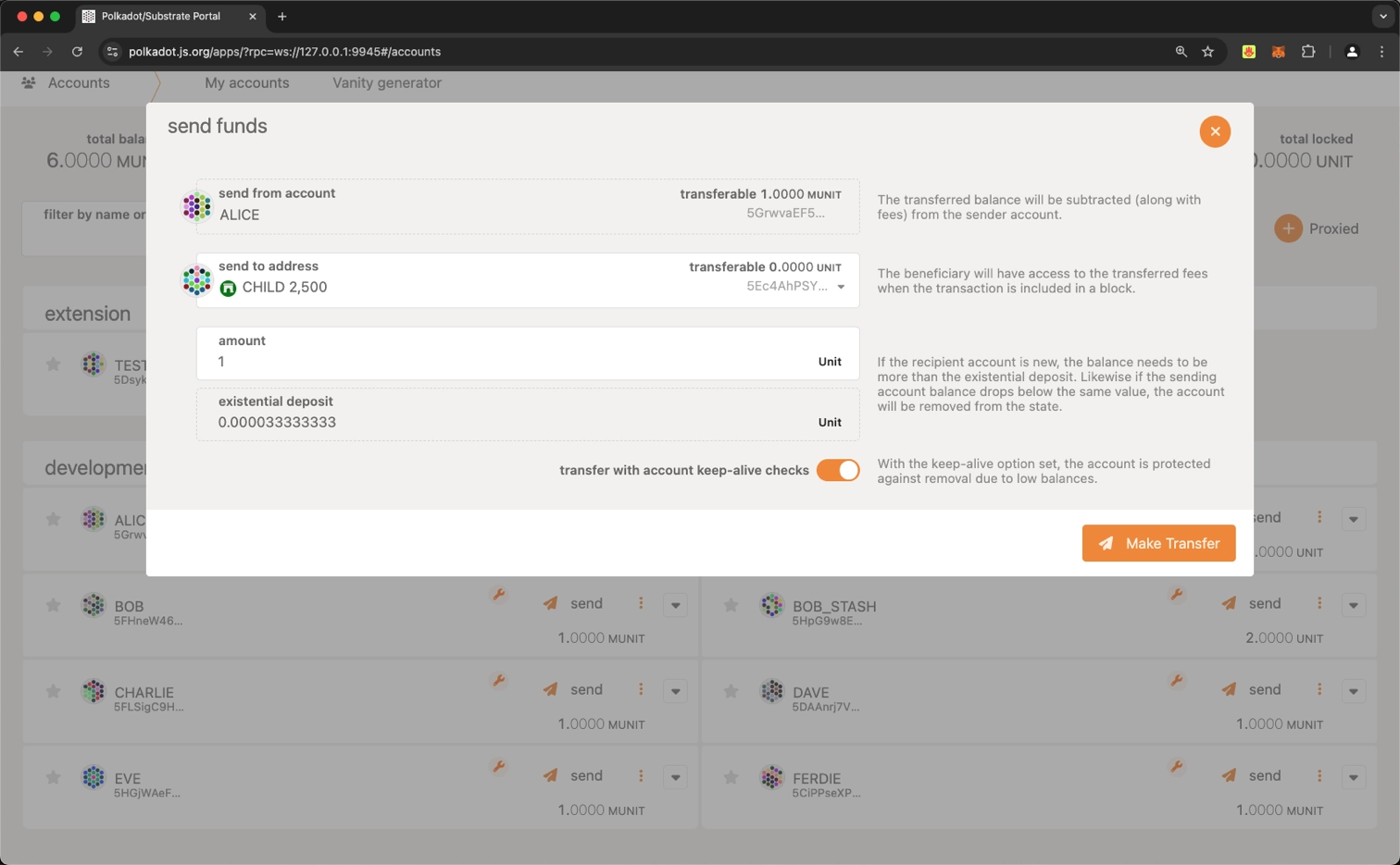 将资金转入 Parachain 2500 的 Sovereign Account