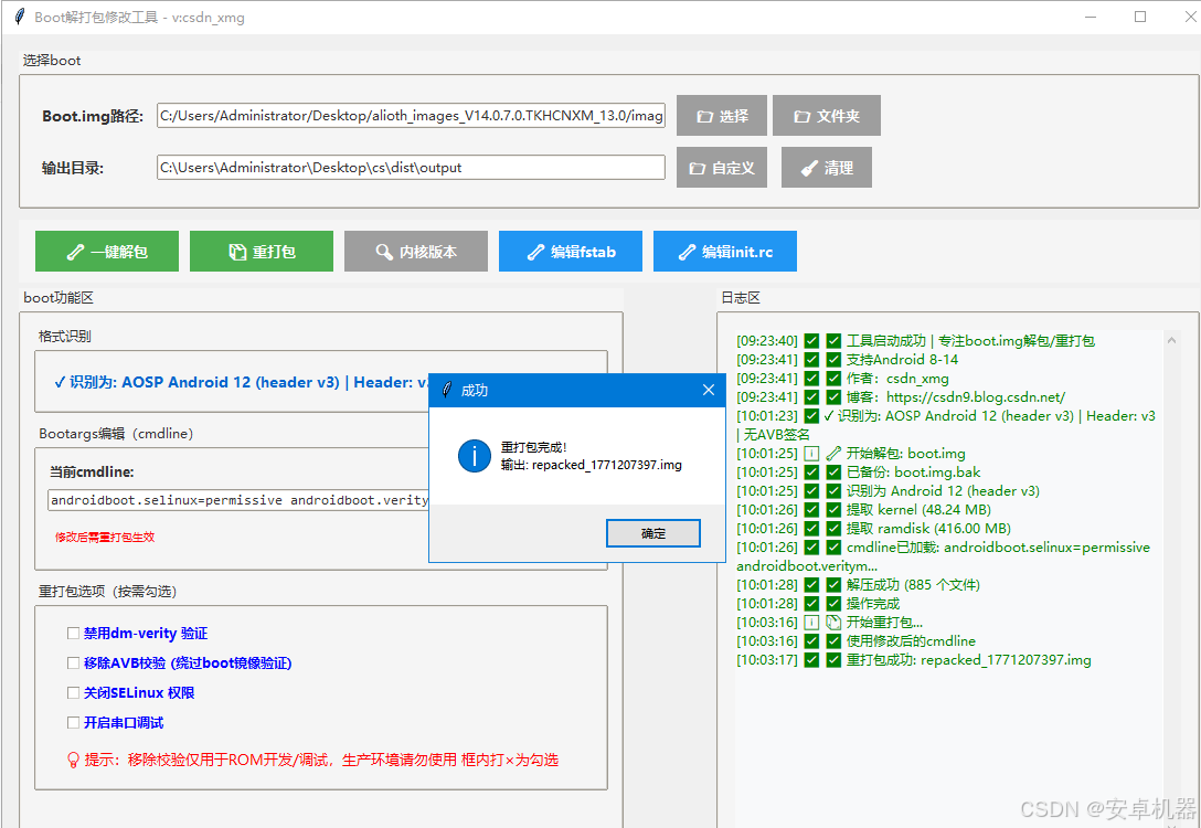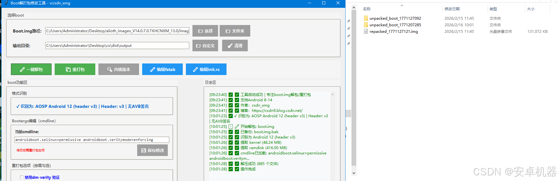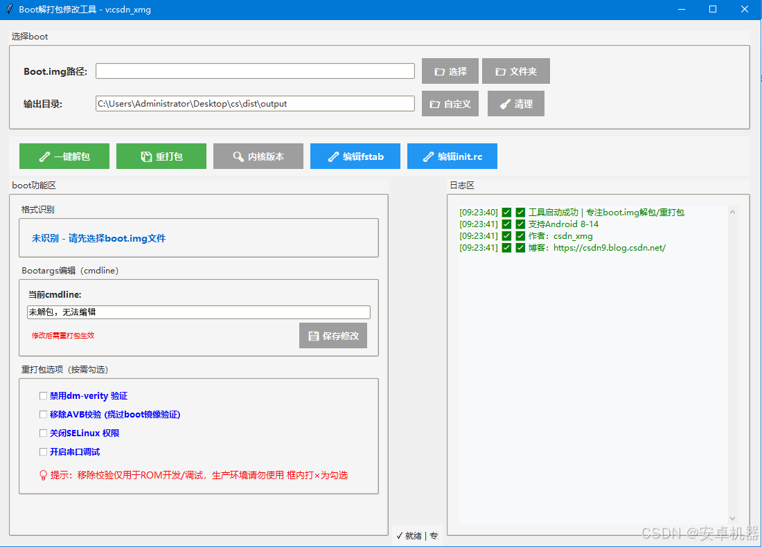 在ROM定制修改过程中,针对不同安卓版本的系统差异,我们需要对boot分区进行相应调整。常见的操作包括解除dm验证、关闭SELinux权限等。虽然市面上已有不少类似工具,但为简化操作流程,我特别开发了这款支持安卓8至安卓14系统的boot分区解包/打包工具。