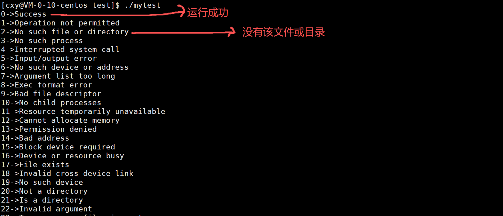 为了方便我们观察,在C标准库中提供了错误码和错误码对应的字符串描述