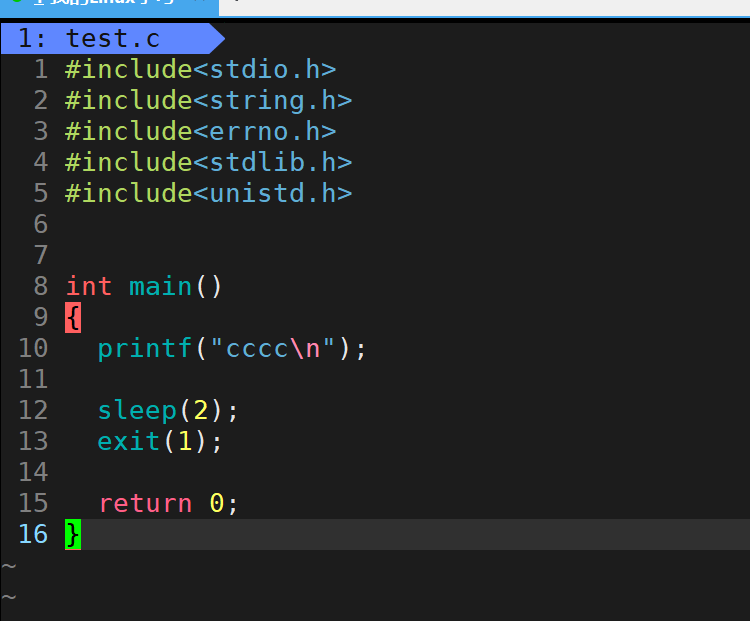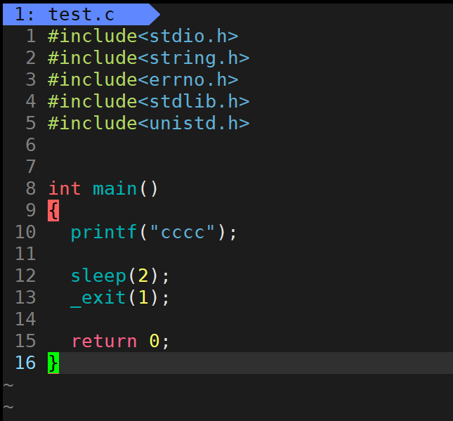 上面的代码中,printf语句把字符串cccc放入缓冲区,由于最后有\n换行,会立即把字符串cccc从缓冲区刷新出来,直接打印字符串cccc,然后休眠2秒。程序结束。