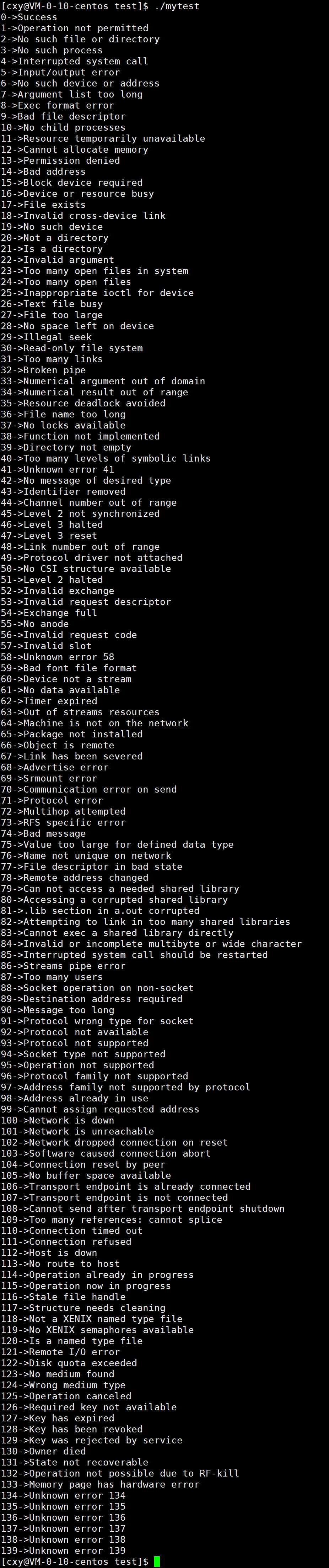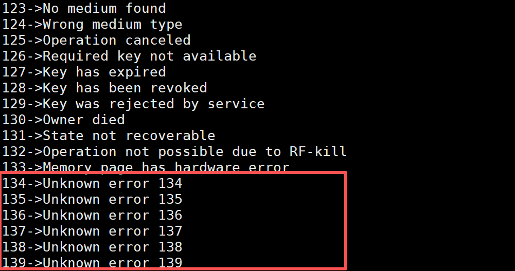 可以发现退出码从0开始一直到133,在Linux系统中一共134个退出码。