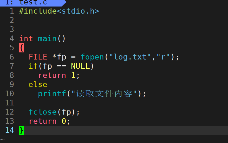 该代码是以只读的方式打开当前目录下的log.txt文件,成功打开时就打印读取文件内容,这是我们期望的结果。